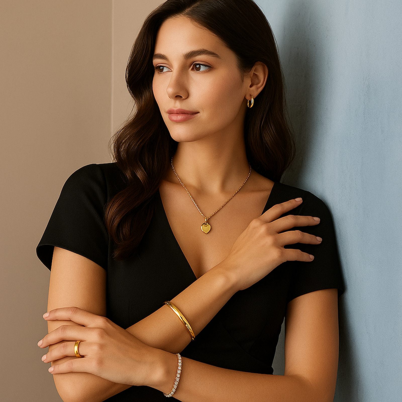 Schmuck ist etwas zutiefst Emotionales – du trägst ihn direkt auf der Haut. Deshalb wählen wir unsere Materialien mit größter Sorgfalt: hochwertiger 316L Edelstahl, veredelt mit 14k oder 18k Vergoldung, wasserfest und hypoallergen. So entstehen Stücke, die langlebig, hautfreundlich und für jeden Tag gemacht sind.
